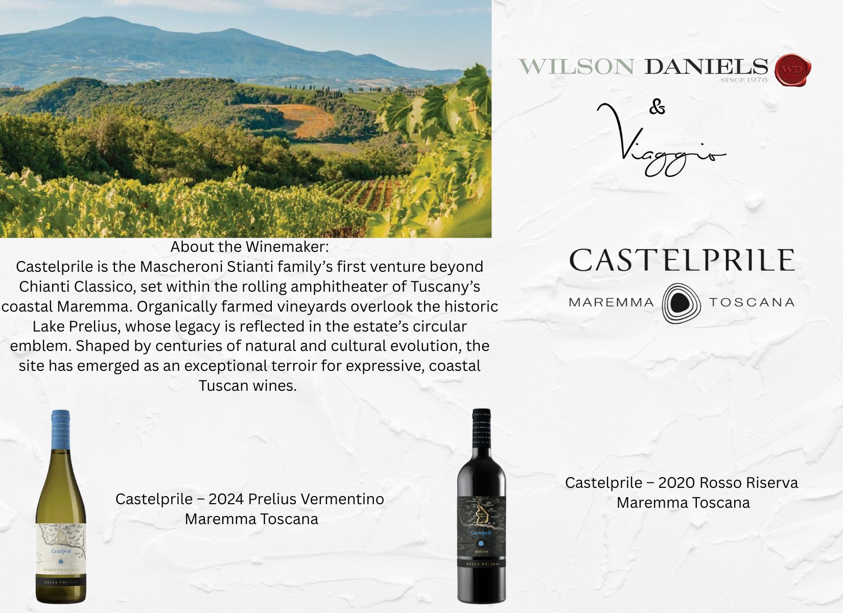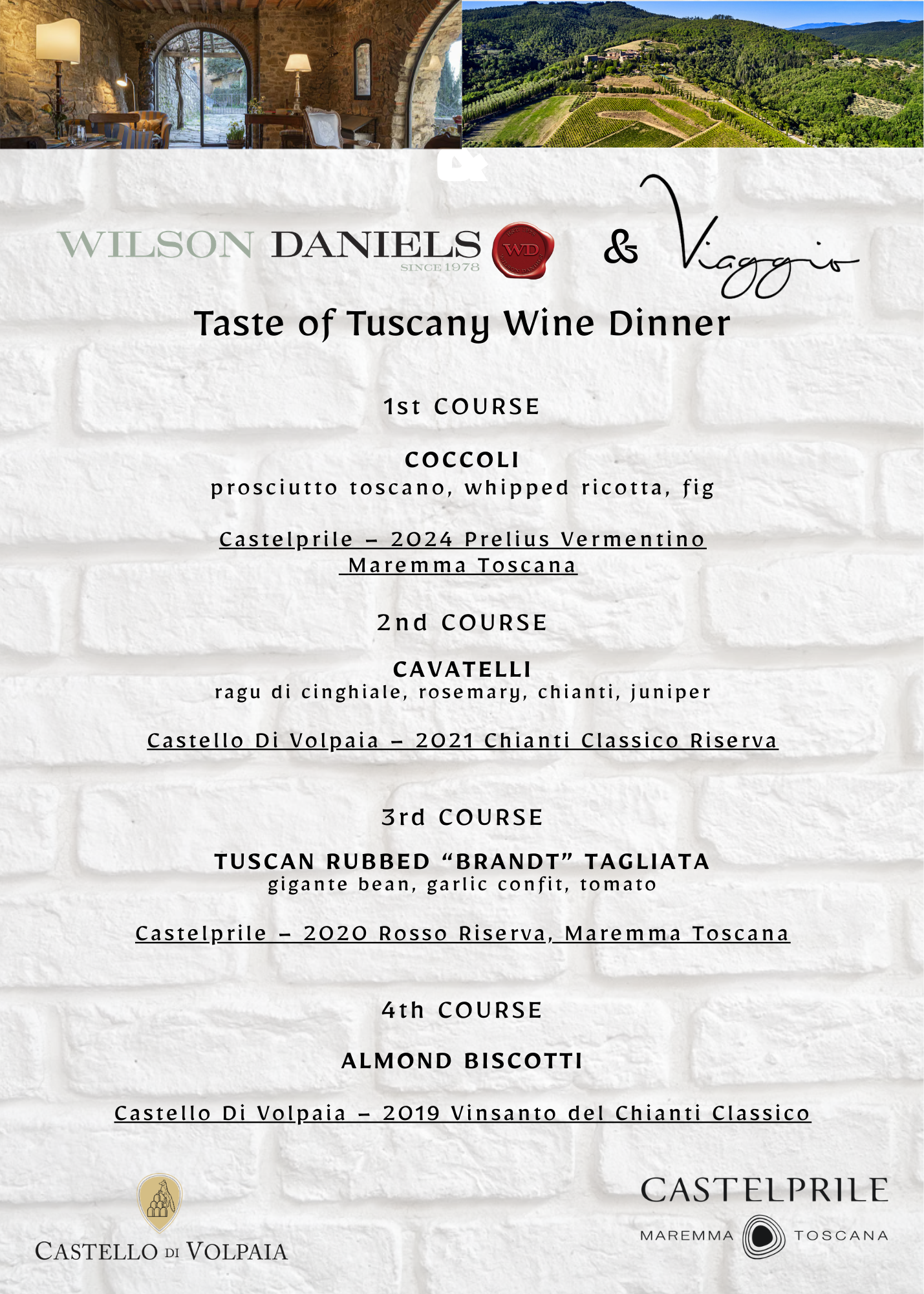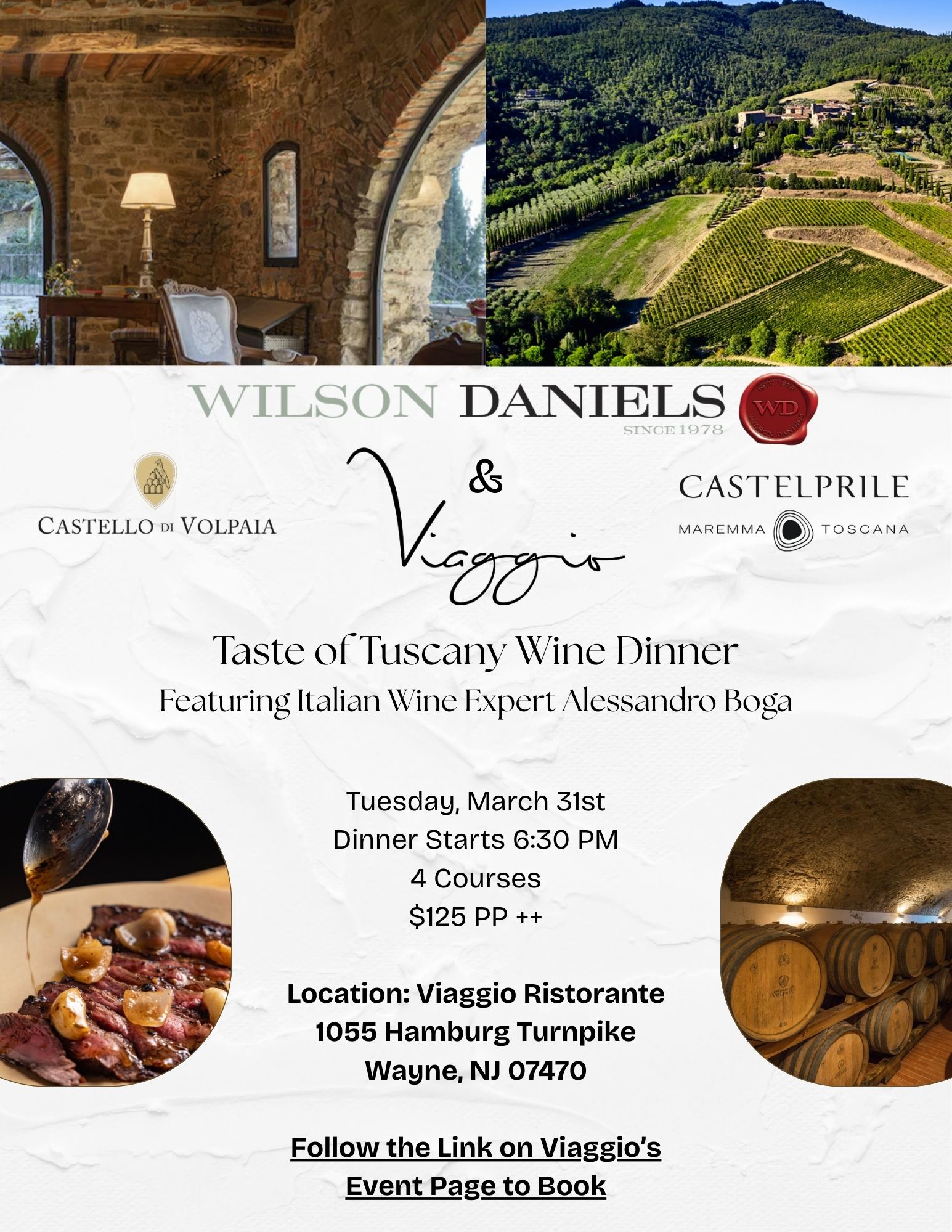 Wilson Daniels x Viaggio Taste of Tuscany Wine Dinner March 31, 2026 06:30 PM until March 31, 2026 09:00 PM Make Your Reservation Today!